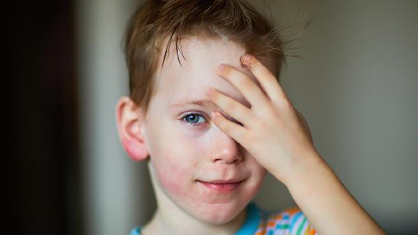 湿疹可能与遗传易感性或环境因素有关,婴儿皮肤屏障功能较弱,接触刺激性物质如化纤衣物、汗液等易引发。表现为面部对称性红斑、丘疹伴脱屑,严重时渗出结痂。家长需选用无刺激婴儿沐浴露,穿着纯棉衣物,遵医嘱使用丁酸氢化可的松乳膏或氧化锌软膏,避免抓挠加重症状。