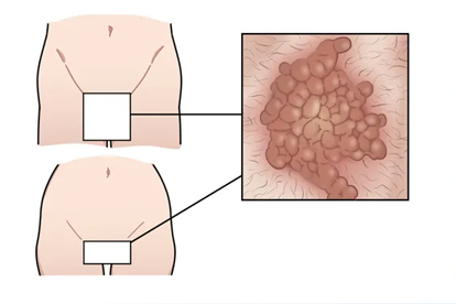 假性尖锐湿疣表现为对称分布的鱼子状或绒毛状小丘疹,质地柔软,无痛痒感。尖锐湿疣初期为单个或多个淡红色小丘疹,逐渐增大呈菜花状、鸡冠状,表面湿润易出血。