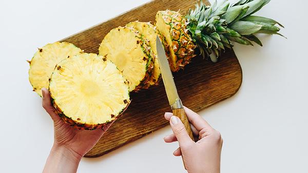 成熟菠萝的果眼表面菱形花纹饱满平整,大小均匀。未熟菠萝果眼尖锐突出,过熟则凹陷发黑。果眼间距均匀的菠萝通常果肉发育更好。检查时还要注意果皮是否完整无破损。