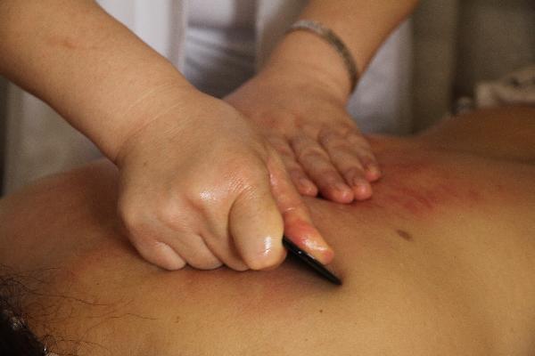 部分人群对刮痧油或工具材质过敏,表现为刮后出现丘疹样硬疙瘩伴瘙痒。这种情况需立即停用相关产品,用金银花煮水冷敷。体质敏感者刮痧前应做小范围皮肤测试。