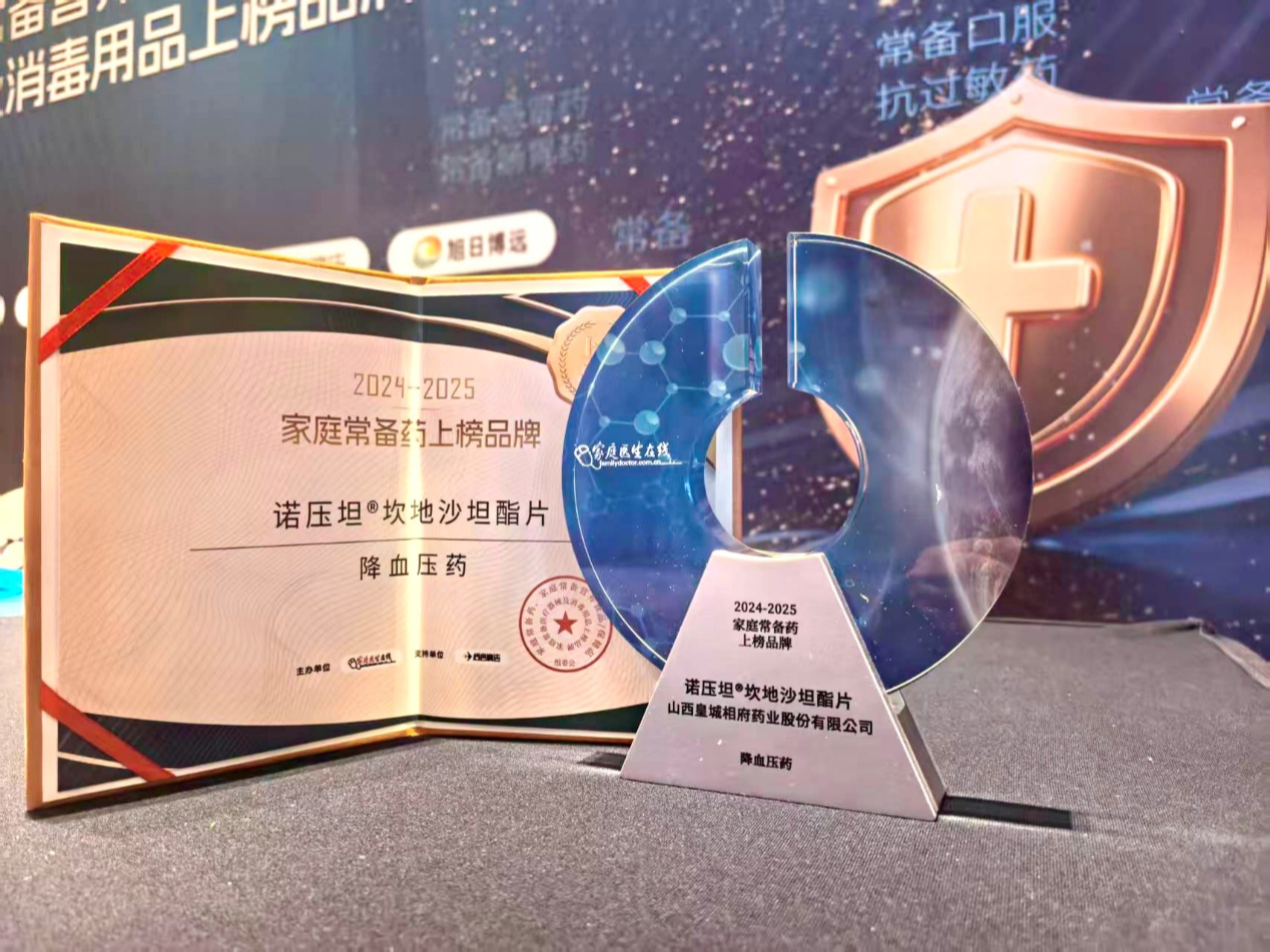 近日,备受瞩目的“2024-2025家庭常备药”上榜品牌活动揭晓,皇城相府药业股份有限公司旗下的主打产品:诺压坦®坎地沙坦酯片成功入围,这一荣誉是对诺压坦®坎地沙坦酯片卓越疗效的充分肯定。